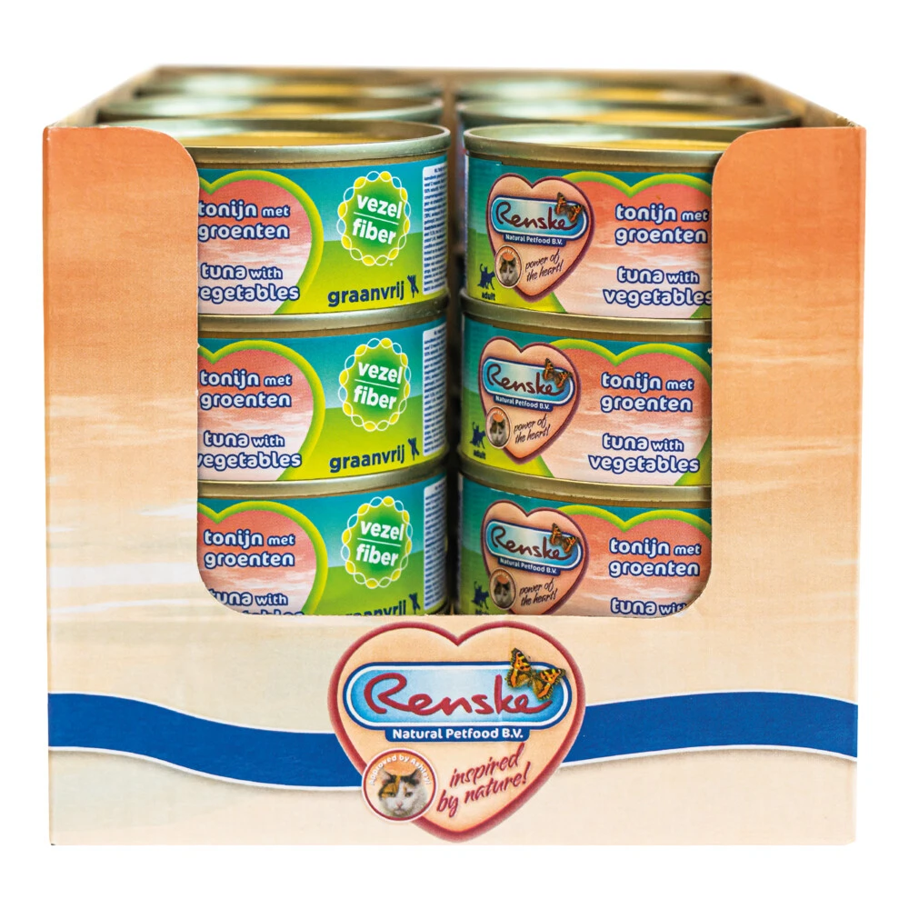 Renske Kattenvoer Vezel Tonijn – GroentenRenske Kattenvoer Vezel Tonijn – Groenten is een smakelijke complete natvoeding voor katten. Door het hoge tonijn gehalte, is dit een zeer licht verteerbaar en smakelijke maaltijd. Deze maaltijd is geheel vrij van suikers, zout, chemische conserveringsmiddelen, kleur-, geur- en smaakstoffen.Renske Kattenvoer Vezel Tonijn – Groenten is ideaal in combinatie met het Renske Super Premium droogvoer voor katten. Katten zijn van nature slechte drinkers. Renske a