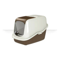 Kattenbak NestorEen mooi vormgegeven kattenbak, eenvoudig en stijlvolle kleuren. Het deurtje is samen met het binnenste deel van de bovenzijde gemakkelijk los te klikken, zo hoef je niet meer de complete bovenzijde van de onderbak los te maken om deze schoon te maken.Gemakkelijk in gebruikVan kunststofIn stijlvolle kleuren