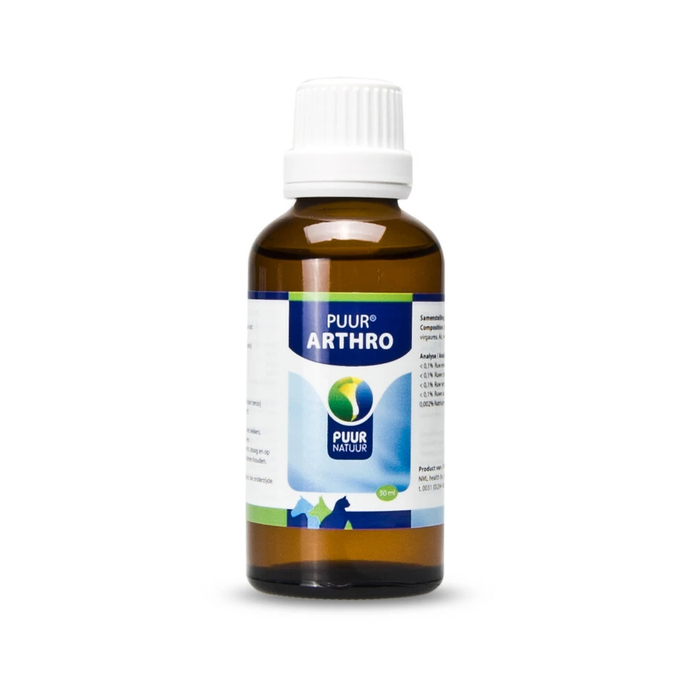 Puur Arthro voor soepele beweging en geeft gewrichten verlichting PUUR Arthro wordt aangeraden bij pijnlijke artrose in boeg-, elleboog-, carpaal-, knie- en tarsaalgewrichten en is geschikt voor hond, kat en paard. Kan tevens worden toegepast bij het konijn. Geen startkreupelheid Vermindert pijnlijke beweging Voor meer souplesse Werkt direct en verlicht snel Verlichting bij arthrose
